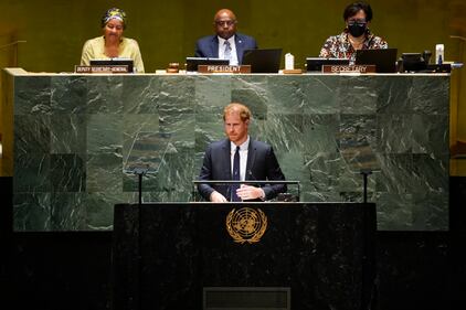 July 2022 Prince Harry speaks at United Nations headquarters, Monday, July 18, 2022. The Duke and Duchess of Sussex were at the UN to mark the observance of Nelson Mandela International Day. (AP Photo/Seth Wenig)