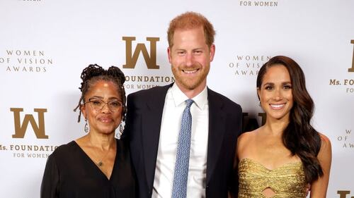 May 2023 NEW YORK, NEW YORK - MAY 16: (L-R) Doria Ragland, Prince Harry, Duke of Sussex and Meghan, The Duchess of Sussex attend the Ms. Foundation Women of Vision Awards: Celebrating Generations of Progress & Power at Ziegfeld Ballroom on May 16, 2023 in New York City. (Photo by Kevin Mazur/Getty Images Ms. Foundation for Women) (Kevin Mazur/Getty Images Ms. Foundation for )