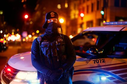 Protests in response to video of Tyre Nichols' arrest WASHINGTON, DC - JANUARY 27: Police standby as demonstrators participate in a protest against the police killing of Tyre Nichols on January 27, 2023 in Washington, DC. Tyre Nichols, a 29-year-old Black man, died three days after being severely beaten by five Memphis Police Department officers during a traffic stop on January 7, 2023. Memphis and cities across the country are bracing for potential unrest when the city releases video footage from the beating to the public later this evening. (Photo by Tasos Katopodis/Getty Images) (Tasos Katopodis/Getty Images)