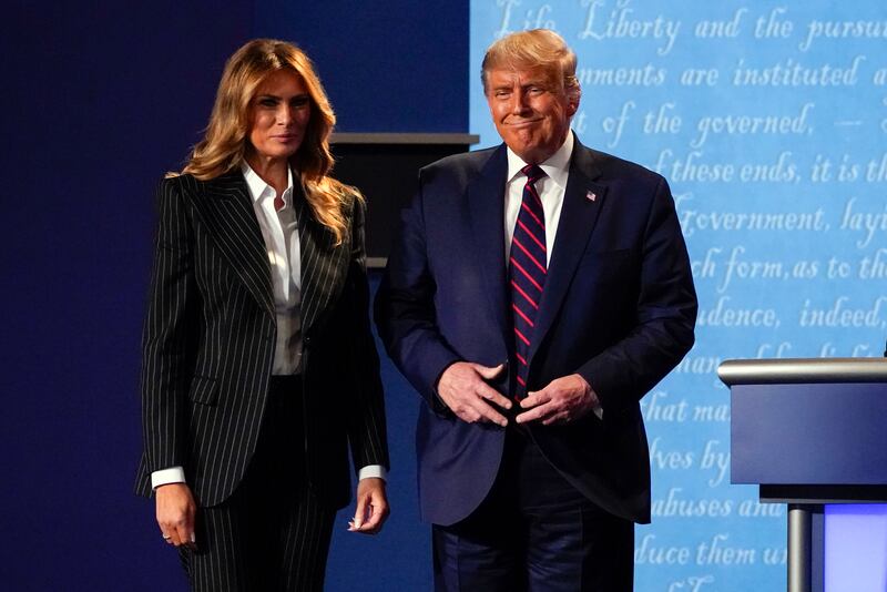 Trump, Biden face off in first presidential debate President Donald Trump and first lady Melania Trump walks off stage at the end of the first presidential debate Tuesday, Sept. 29, 2020, at Case Western University and Cleveland Clinic, in Cleveland, Ohio. (AP Photo/Julio Cortez)