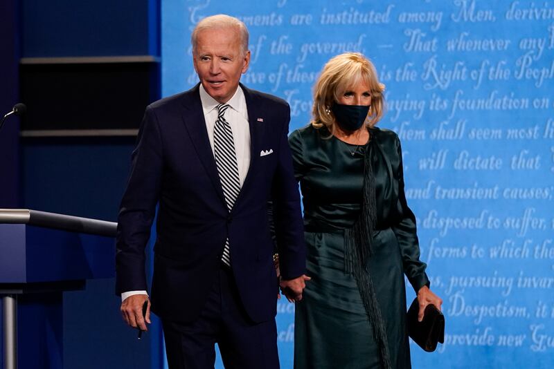 Trump, Biden face off in first presidential debate Democratic presidential candidate former Vice President Joe Biden and his wife Jill Biden during the first presidential debate Tuesday, Sept. 29, 2020, at Case Western University and Cleveland Clinic, in Cleveland, Ohio. (AP Photo/Patrick Semansky)