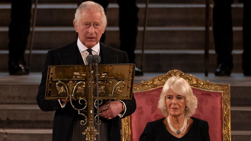 Photos: King Charles III addresses Parliament, vows to follow Queen Elizabeth II's example Britain's King Charles III, flanked by Britain's Camilla, Queen Consort, speaks during the Presentation of Addresses by both Houses of Parliament in Westminster Hall, inside the Palace of Westminster, central London on September 12, 2022, in London. (Ben Stansall - WPA Pool/Getty Images)