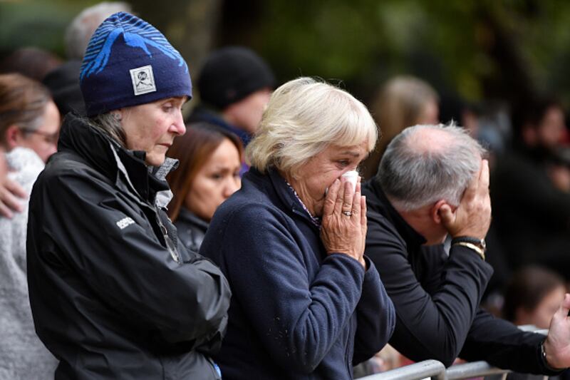 The Committal Service For Her Majesty Queen Elizabeth II WINDSOR, ENGLAND - SEPTEMBER 19: Members of the public line the Long Walk on September 19, 2022 in Windsor, England. The committal service at St George's Chapel, Windsor Castle, took place following the state funeral at Westminster Abbey. A private burial in The King George VI Memorial Chapel followed. Queen Elizabeth II died at Balmoral Castle in Scotland on September 8, 2022, and is succeeded by her eldest son, King Charles III. (Photo by Richard Heathcote/Getty Images) (Richard Heathcote/Getty Images)