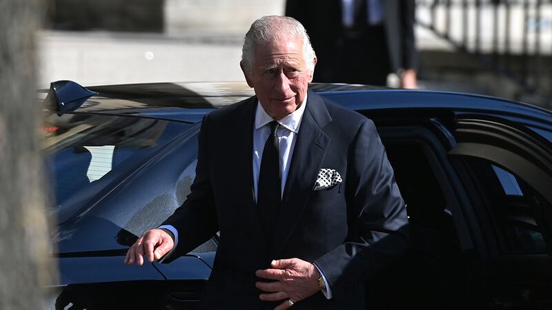 Photos: King Charles III visits Northern Ireland King Charles III arrives for a service of reflection in memory of Queen Elizabeth II at St Anne's Cathedral on September 13, 2022 in Belfast, Northern Ireland. King Charles III is visiting Northern Ireland for the first time since ascending the throne following the death of his mother, Queen Elizabeth II, who died at Balmoral Castle on September 8, 2022. (Photo by Carrie Davenport/Getty Images) (Carrie Davenport/Getty Images)