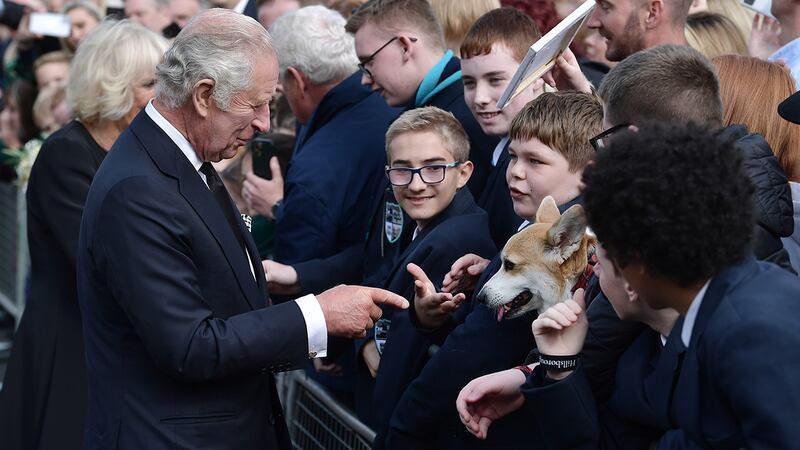 Photos: King Charles III visits Northern Ireland His Majesty King Charles III, accompanied by the Queen Consort, is greeted by members of the public including a woman with her pet corgi called Connie outside Hillsborough Castle on September 13, 2022, in Hillsborough, Northern Ireland. (Charles McQuillan/Getty Images)