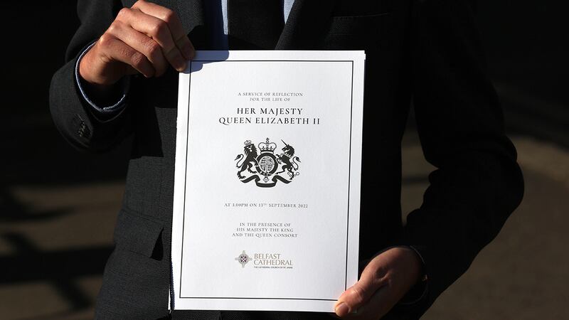 Photos: King Charles III visits Northern Ireland The order of service for a Service of Reflection for Queen Elizabeth II at St Anne's Cathedral on September 13, 2022 in Belfast, Northern Ireland. Charles and Camilla are visiting the four home nations of the UK in the run-up to the state funeral for Queen Elizabeth II on Monday. (Photo Liam McBurney - WPA Pool/Getty Images) (WPA Pool/Getty Images)