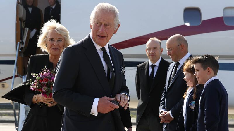 Photos: King Charles III visits Northern Ireland King Charles III and Camilla, Queen Consort, arrive at Belfast City Airport as the King continues his tour of the four home nations on September 13, 2022, in Belfast, United Kingdom. (Liam McBurney - WPA Pool/Getty Images)