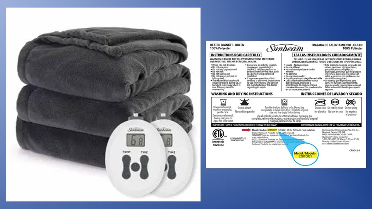 The queen-sized blankets made by Sunbeam can overheat and pose a fire or burn hazard, according to the CPSC.
