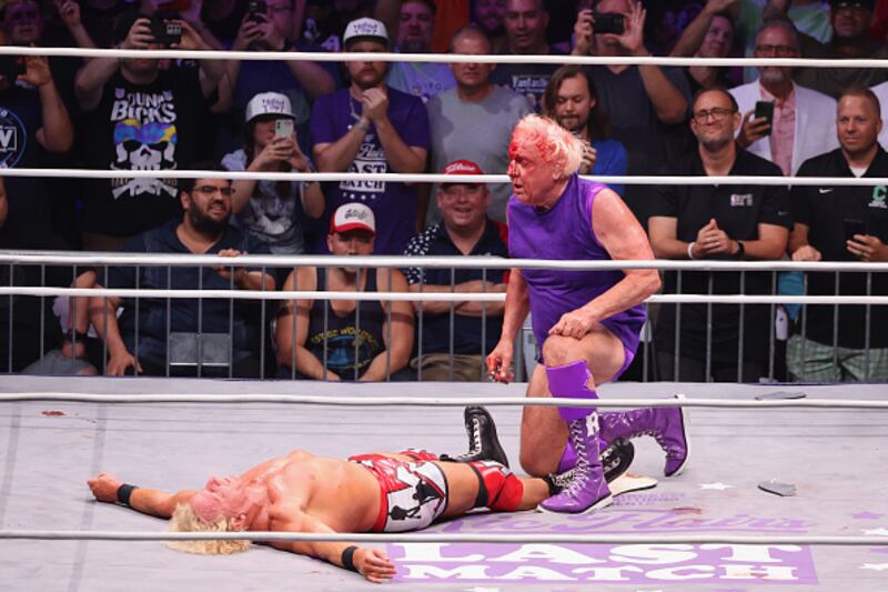 Photos: Ric 'The Nature Boy' Flair returns to ring 'one last time' Ric Flair in action during Ric Flair's Last Match at Nashville Municipal Auditorium on July 31, 2022, in Nashville, Tennessee. (Jason Kempin/Getty Images)