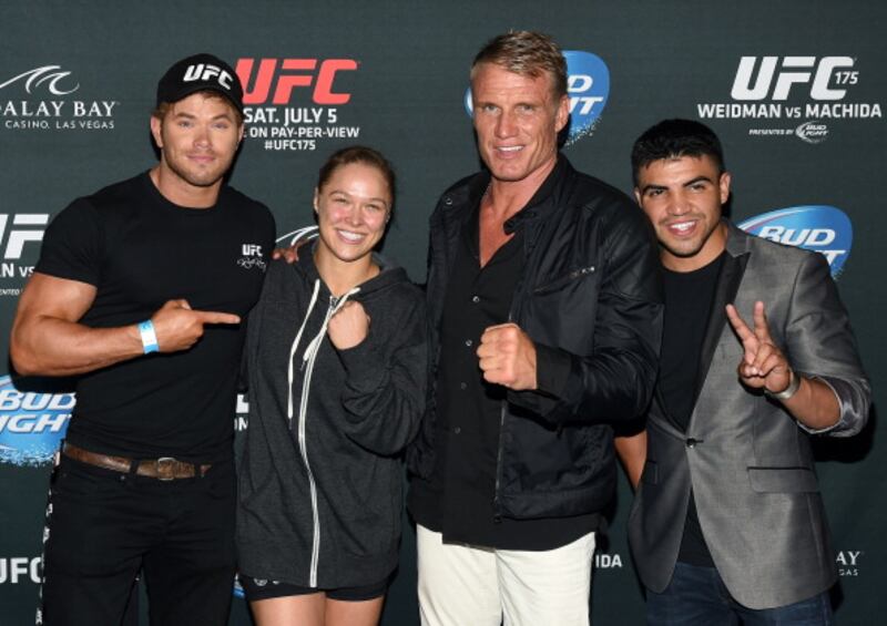 Through the years LAS VEGAS, NV - JULY 05: (L-R) Cast members from the upcoming movie "The Expendables 3," actor Kellan Lutz, UFC bantamweight champion and actress Ronda Rousey, actor Dolph Lundgren and boxer Victor Ortiz, attend the UFC 175 event at the Mandalay Bay Events Center on July 5, 2014 in Las Vegas, Nevada. Rousey defeated Alexis Davis by knockout 16 seconds into the evening's co-main event. (Photo by Ethan Miller/Getty Images) (Ethan Miller/Getty Images)