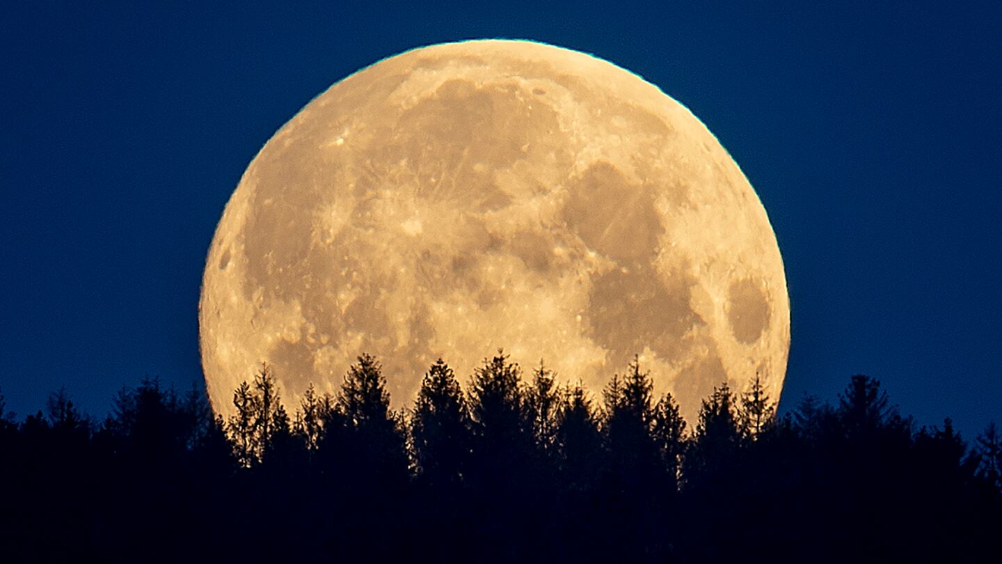 Super flower moon 2020 The full moon sets behind trees in the Taunus region near Frankfurt, Germany, Thursday, May 7, 2020. (AP Photo/Michael Probst)