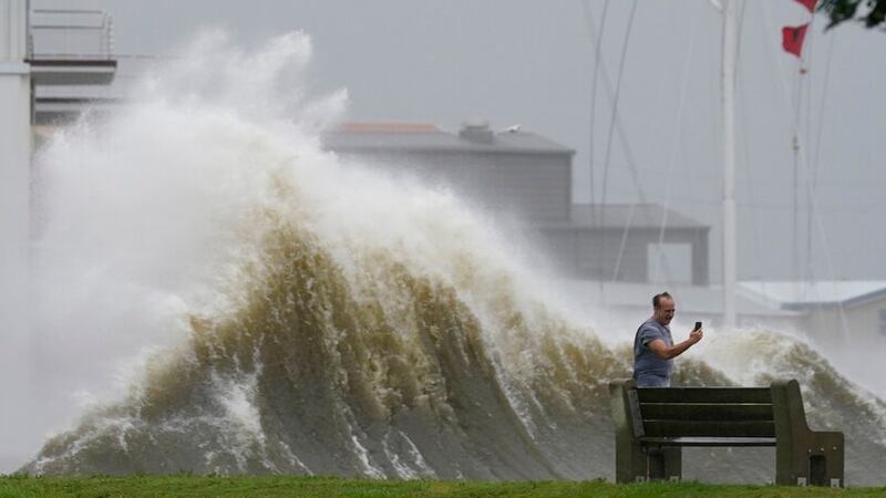 Photos: Hurricane Ida makes landfall in Louisiana as a Category 4 storm A man takes pictures of high waves along the shore of Lake Pontchartrain as Hurricane Ida nears, Sunday, Aug. 29, 2021, in New Orleans. (AP Photo/Gerald Herbert) (Gerald Herbert/AP)