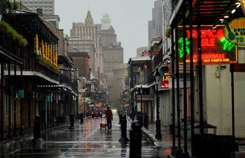 Photos: Hurricane Ida makes landfall in Louisiana as a Category 4 storm A man pulls a cart down a mostly deserted Bourbon Street in the French Quarter as the early effects of Hurricane Ida are felt, Sunday, Aug. 29, 2021, in New Orleans, La. (AP Photo/Eric Gay) (Eric Gay/AP)