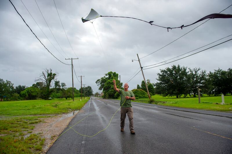 Photos: Hurricane Ida makes landfall in Louisiana as a Category 4 storm John Kain, 62, of Arabi, tries to fly a kite in Hurricane Ida winds with a kite he just made out of a political campaign sign on Sunday, Aug. 29, 2021. (Chris Granger/The Advocate via AP) (CHRIS GRANGER/AP)