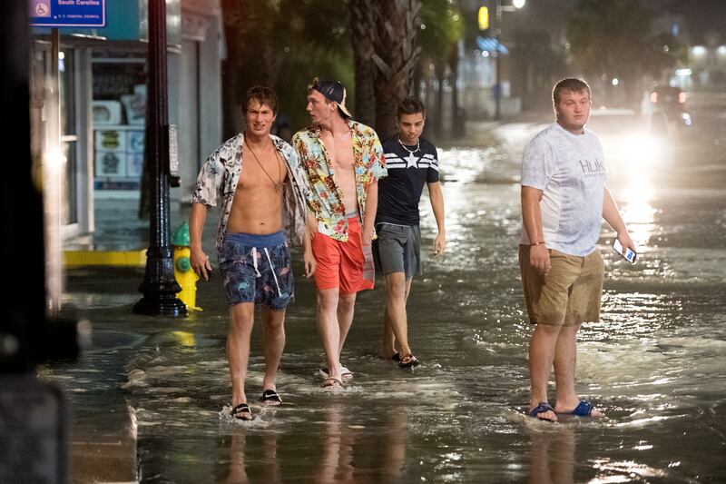 The storm, which was about 60 miles south-southeast of Charleston, South Carolina, at 5 p.m., has maintained maximum sustained winds of 70 mph and continues to churn north-northeast at 16 mph.