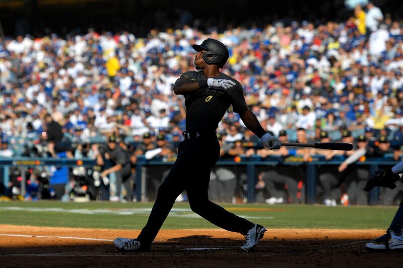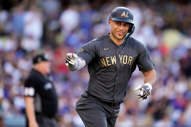 Photos: American League wins 9th straight MLB All-Star Game American League's Giancarlo Stanton, of the New York Yankees, connects for a two-run home run during the fourth inning of the MLB All-Star baseball game against the National League, Tuesday, July 19, 2022, in Los Angeles. (AP Photo/Jae C. Hong)