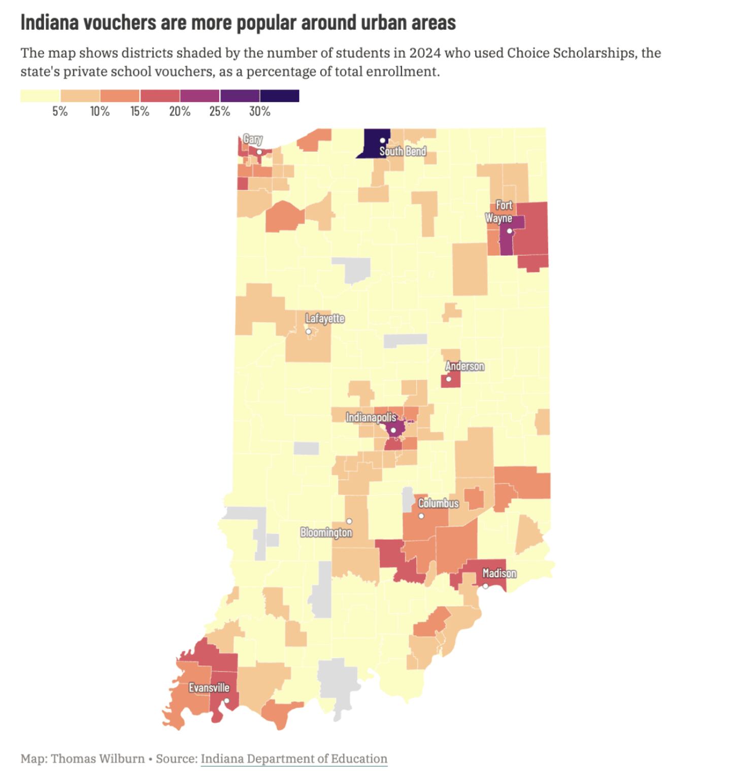 That reflects a statewide trend: Voucher use has surged in recent years as Indiana lawmakers loosened eligibility requirements. In 2026, the program will open to all families, regardless of income, Chalkbeat reports.