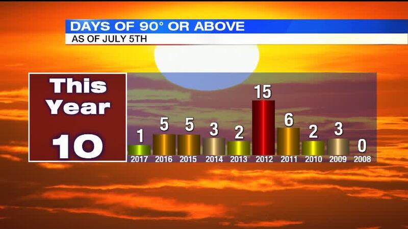 According to data from the National Weather Service, Dayton has already recorded 10 days with temperatures reaching 90 degrees or warmer. While that may not seem like many, consider the fact that we are only just over two weeks into summer.