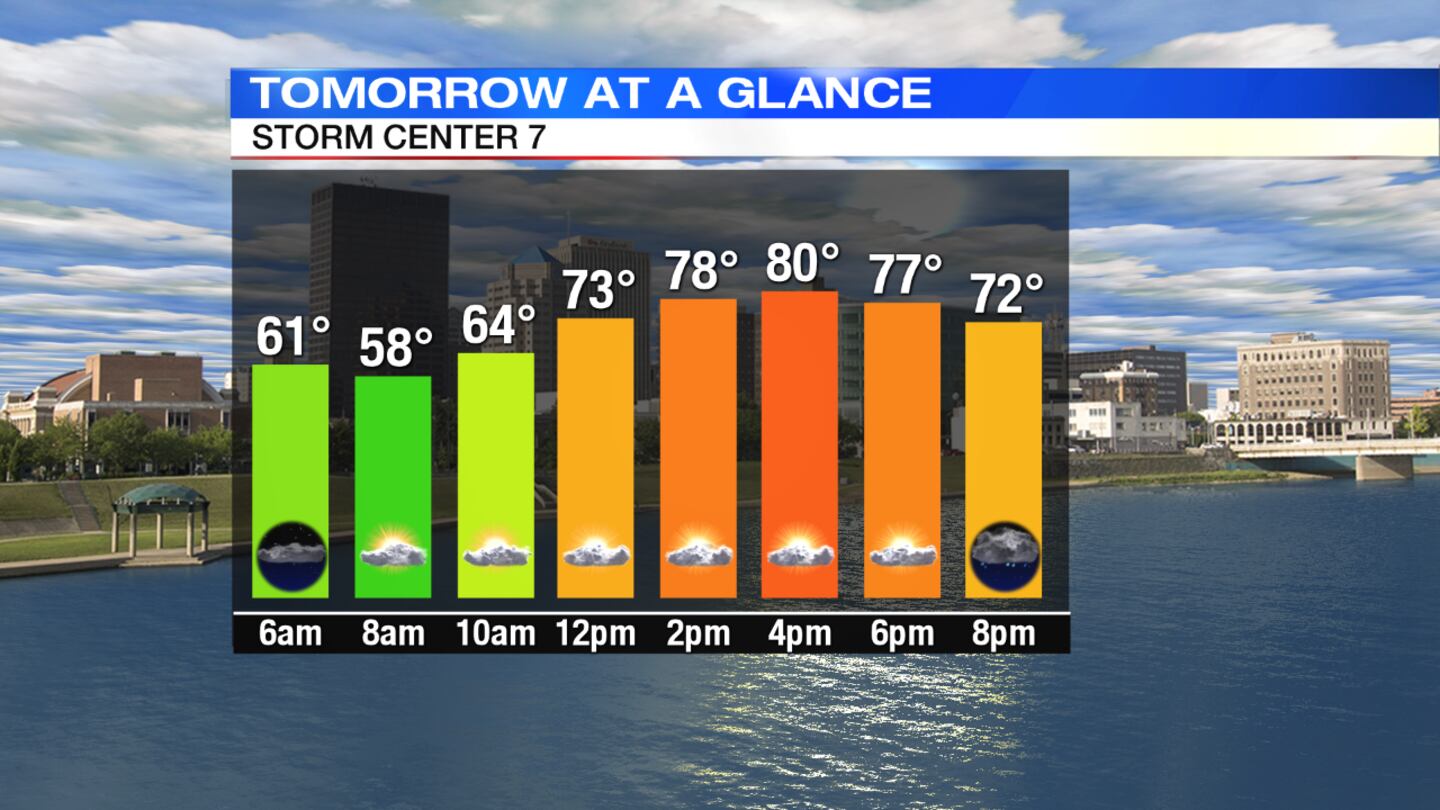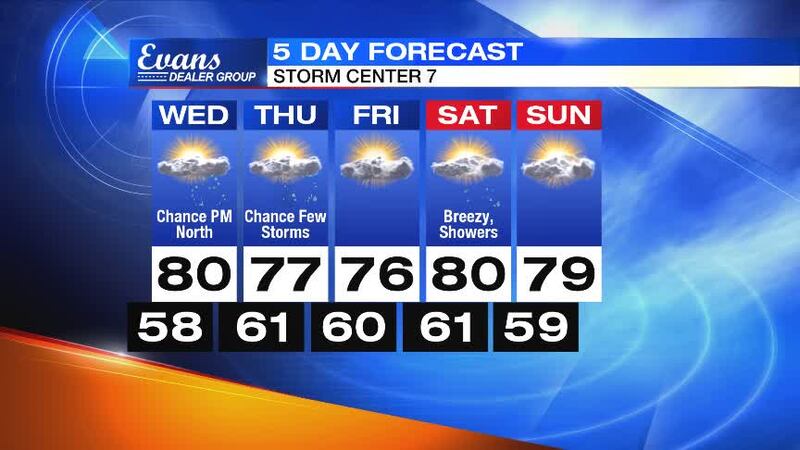 Wednesday: Expect a mix of sun and clouds. It will be warm again with a chance for a passing shower or storm, mainly across the northwestern Miami Valley. Highs will be near 80 degrees.