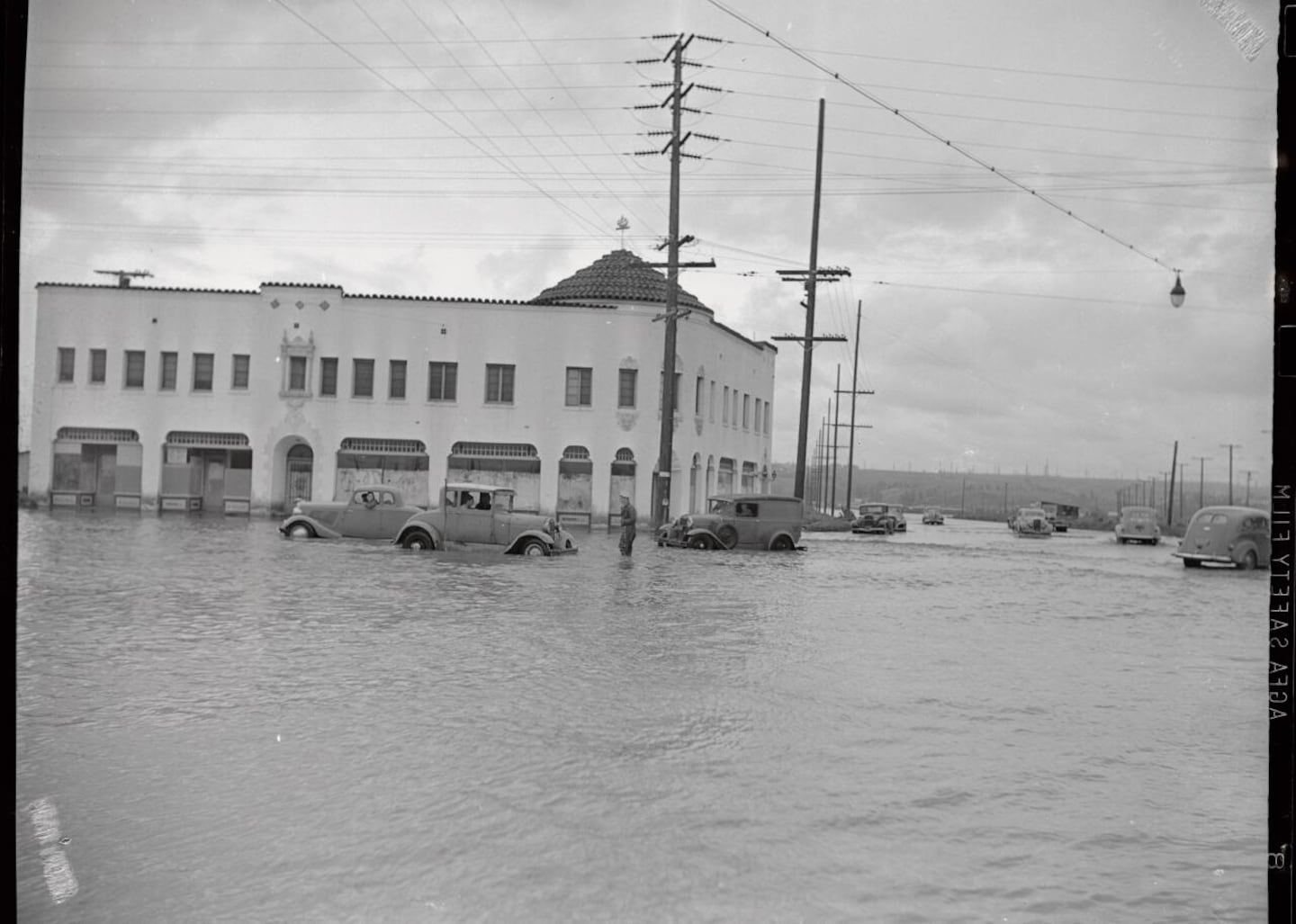 Two hurricanes hit South Florida two weeks apart in September 1948 and October 1948, causing extensive flood damage. The first of the two was the most destructive, with wind gusts of 160 miles per hour and a 6-foot storm surge.