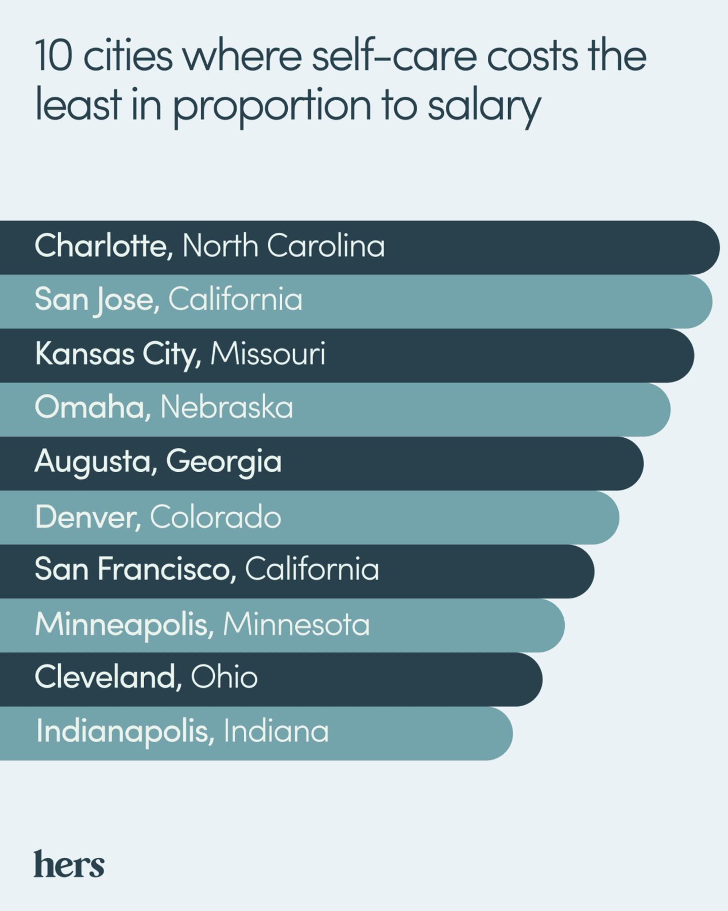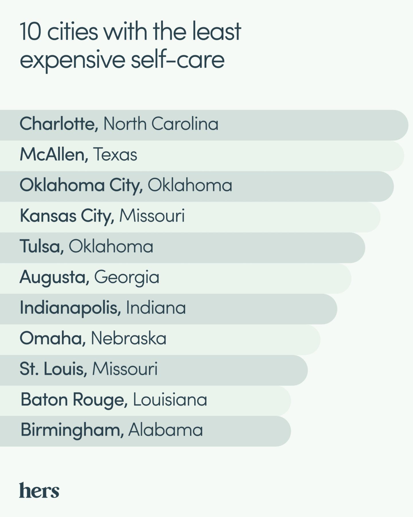 Hers reviewed 86 cities and ranked them from most to least affordable for self-care: