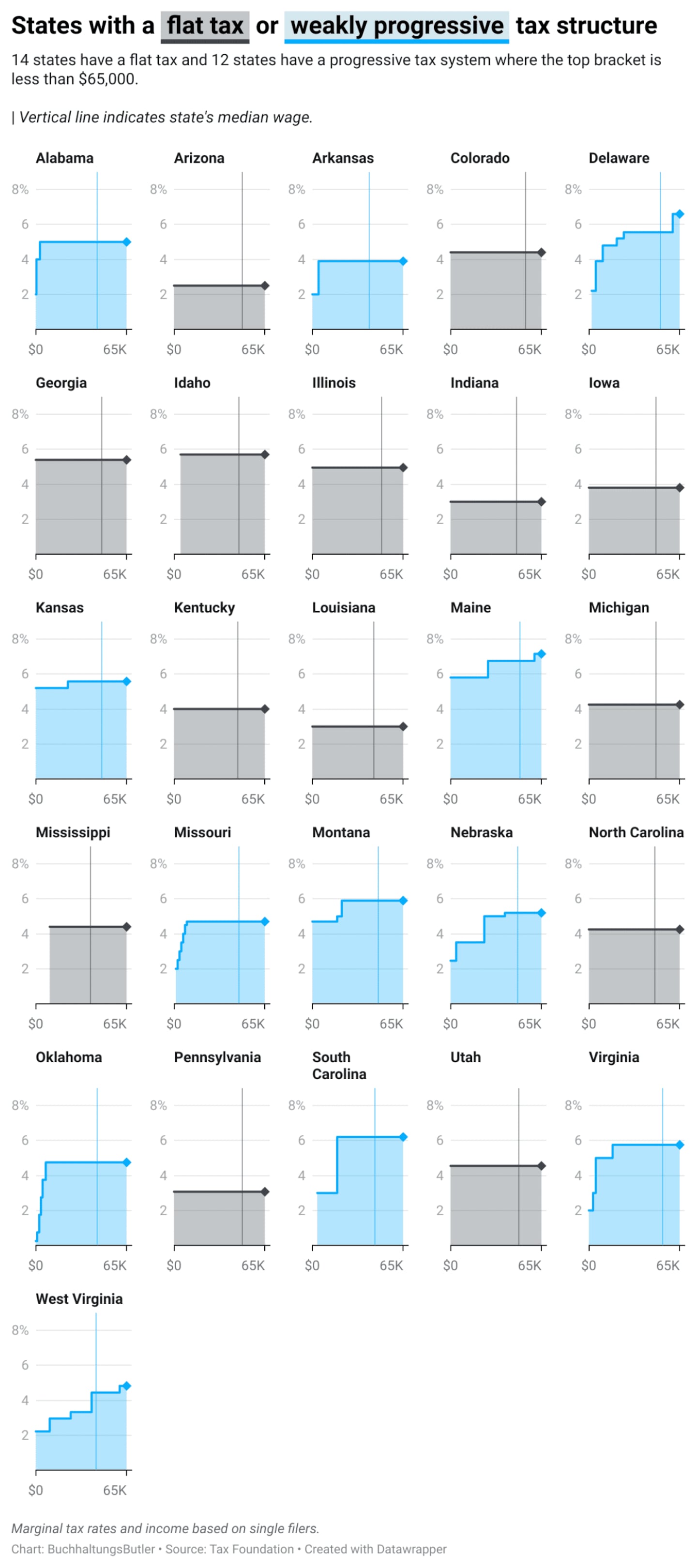 But what is certain is that states are increasingly implementing simpler, flat-tax systems on wages while some other states with modestly progressive tax systems are effectively imposing a single-rate tax as well.