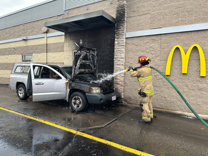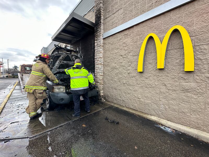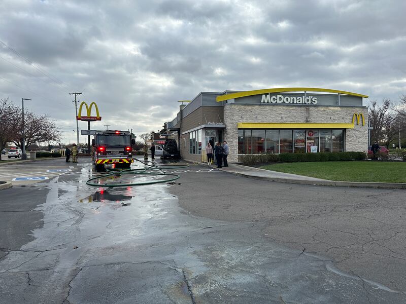 The Riverside Fire Department received reports of a car on fire in the drive-thru lane at the McDonalds on Harshman Road in Riverside, across the street from Stebbins High School, fire crews said.