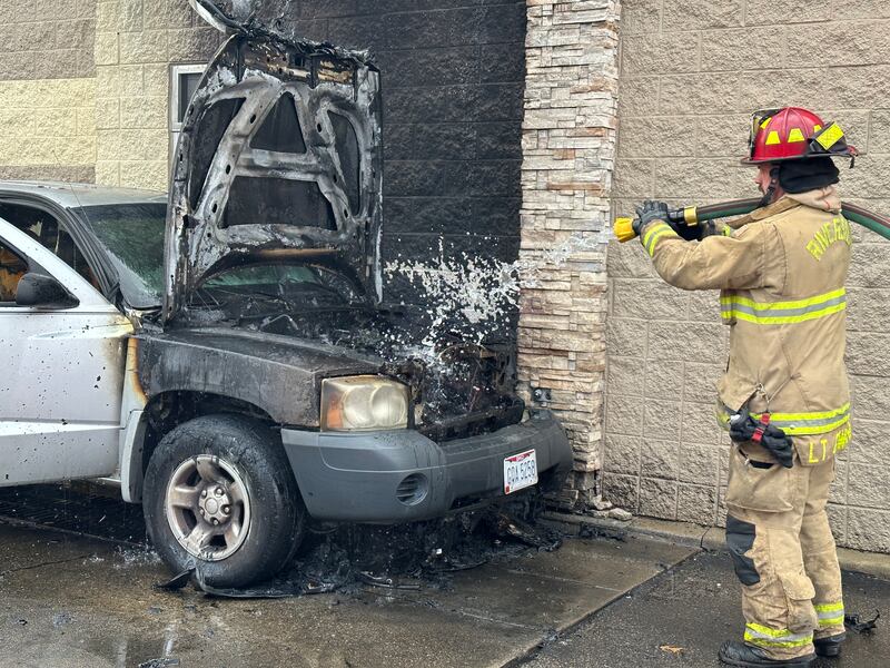 Crews upgraded the fire to a full structural assignment once the fire began to spread from the truck to the side of the building, crews reported.