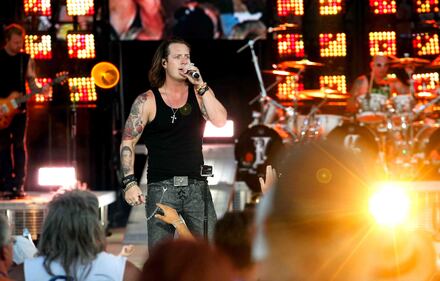 Artists - Country Concert Day 1 Florida Georgia Line's Tyler Hubbard performs before a large crowd at the Country Concert Thursday, July 10, 2014, in Ft. Loramie, Ohio. NICK DAGGY / STAFF