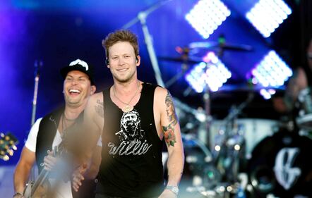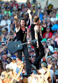 Artists - Country Concert Day 1 Florida Georgia Line's Tyler Hubbard (left) and Brian Kelley perform before a large crowd at the Country Concert Thursday, July 10, 2014, in Ft. Loramie, Ohio. NICK DAGGY / STAFF