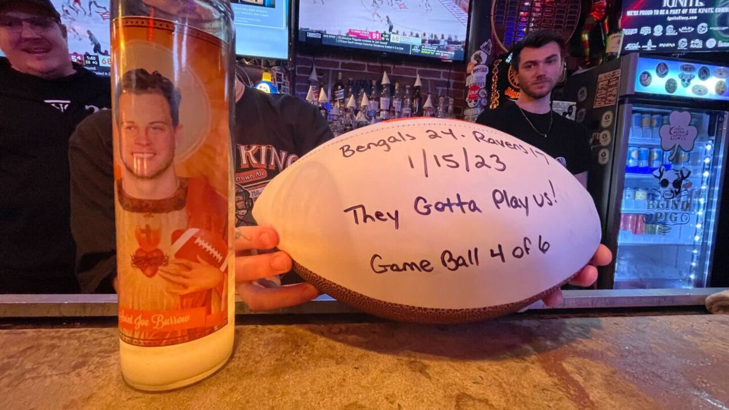 CINCINNATI — Following the Cincinnati Bengals’ playoff win over the Baltimore Ravens Sunday night, head coach Zac Taylor delivered the game ball to the Blind Pig, a sports bar in Cincinnati, according to our news partner WCPO in Cincinnati.