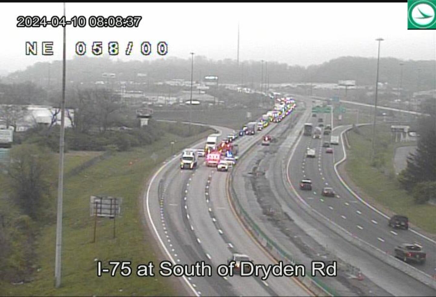 - The left lane is blocked following a crash on Southbound Interstate 75 near Dryden Road. ODOT cameras indicated that the left lane is blocked and two vehicles are involved. Moraine Police officers have arrived at the scene.