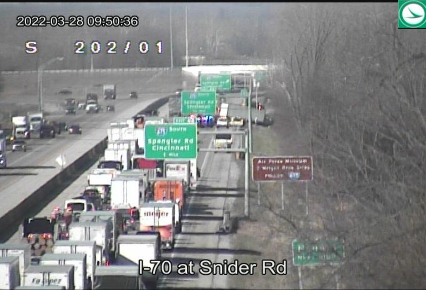 ODOT cameras in the area show state troopers and other ODOT crews initially blocked the right and center lanes of westbound I-70 with delays are reported around 45 minutes. All lanes of the highway reopened around 11:20 a.m.