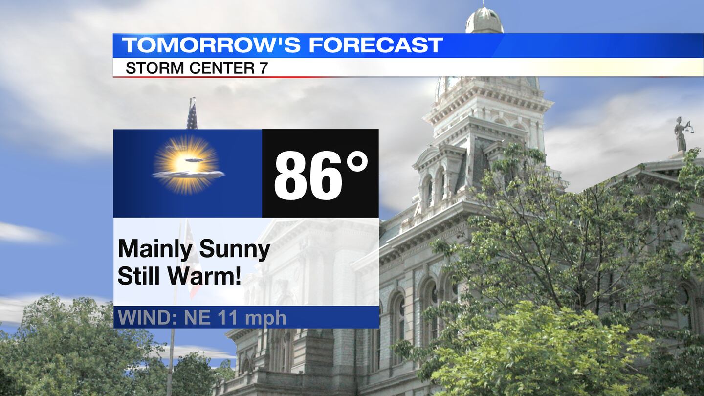 MONDAY: Sunshine and above-average highs continue. However, slightly cooler with highs in the lower 80s.