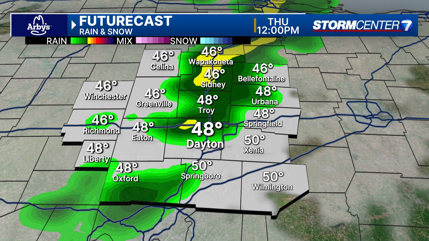 THURSDAY: Mostly cloudy early with a quick moving line of showers possible from late morning into early afternoon with a cold front. Breezy to go along with those showers.