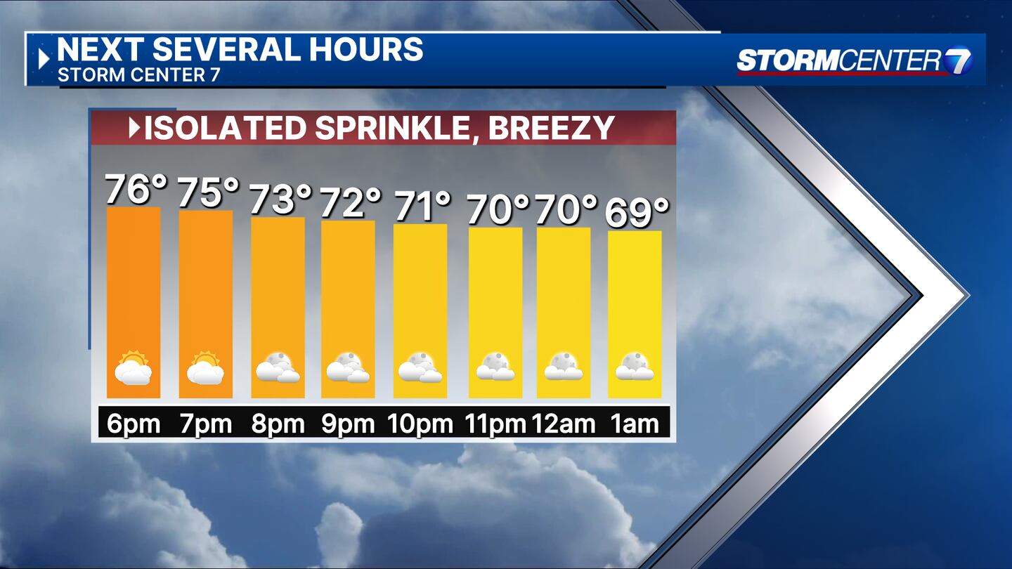 SATURDAY: Breezy with partly cloudy skies and lows in the lower to middle 60s. Gusts 20-30 MPH.