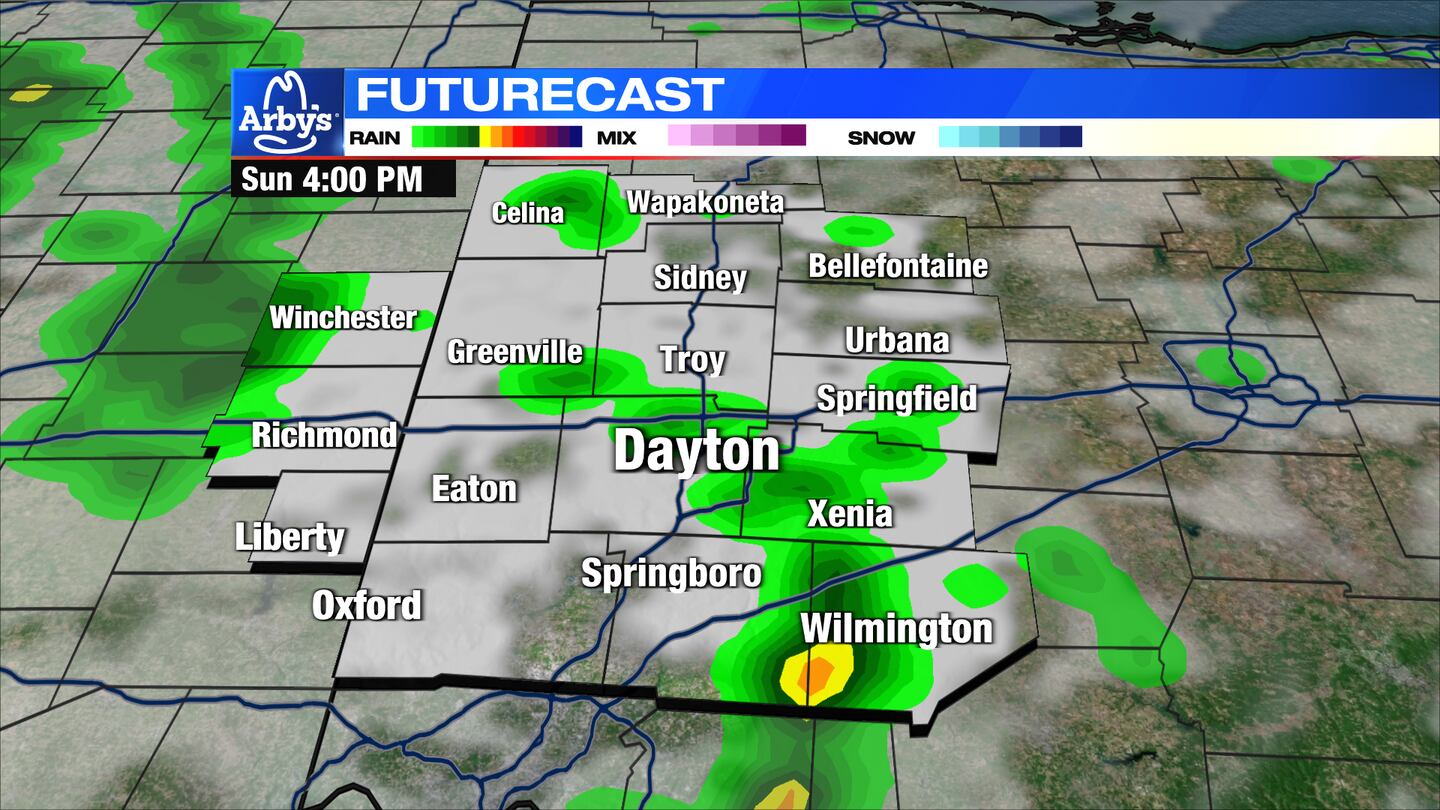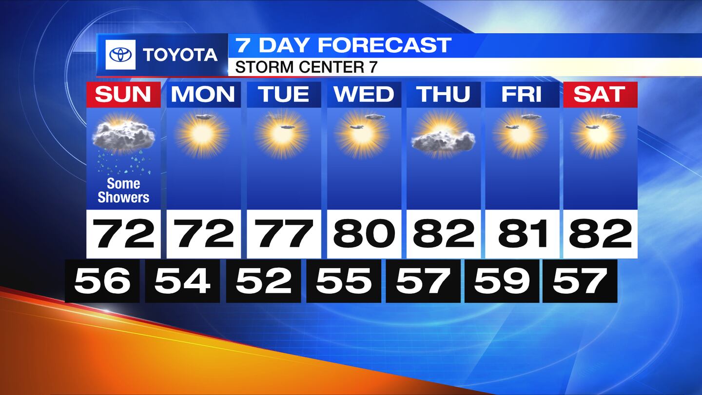 SUNDAY: Partly to mostly cloudy with some passing showers. Not a washout, but not dry either. Highs in the low to mid 70s.