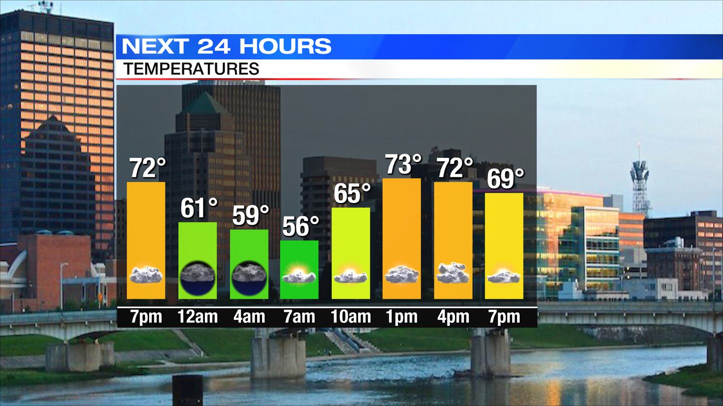 TUESDAY: Partly cloudy and a little warmer with highs reaching the upper 70s.