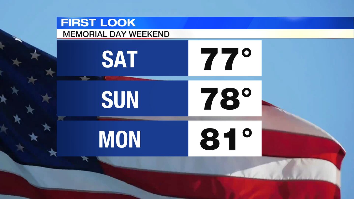 SATURDAY: Sunshine continues with highs in the upper 70s.