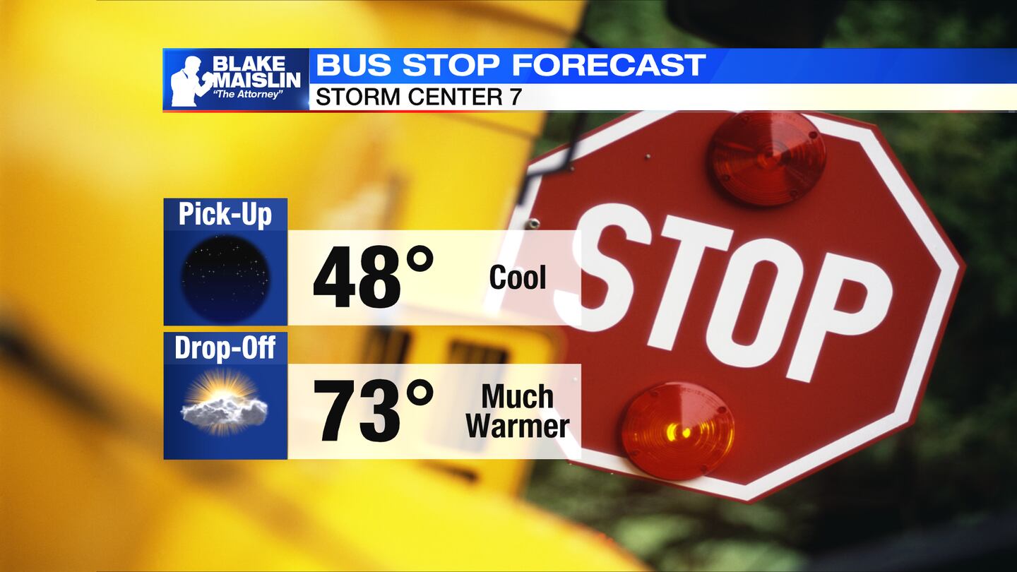 TUESDAY: Sunshine early, then clouds gradually filter in as the day progresses. Much warmer. Highs in the mid to upper 70s.