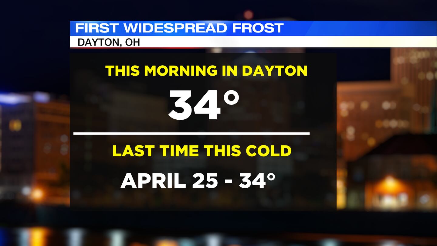 MONDAY: Mostly cloudy with more showers. A cooling trend begins with highs only in the upper 50s.