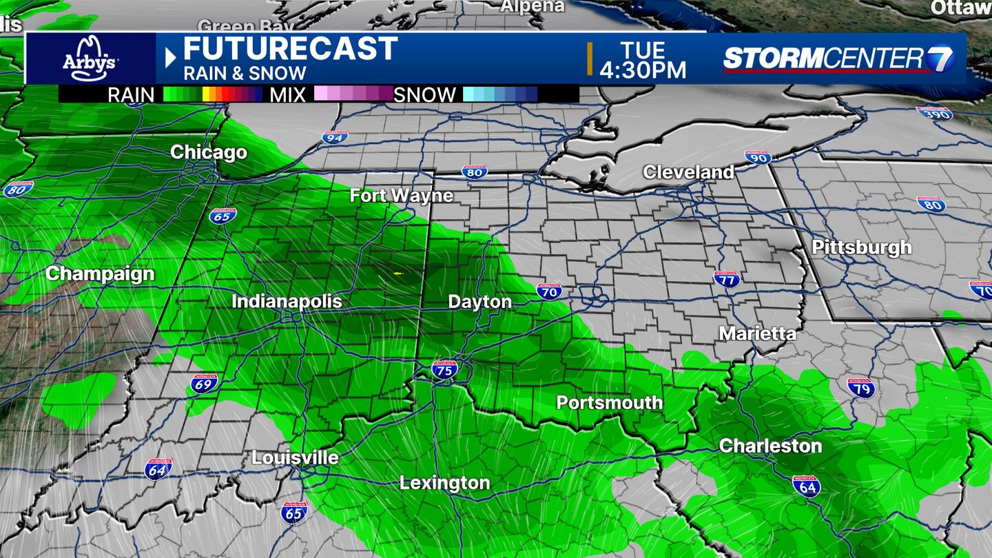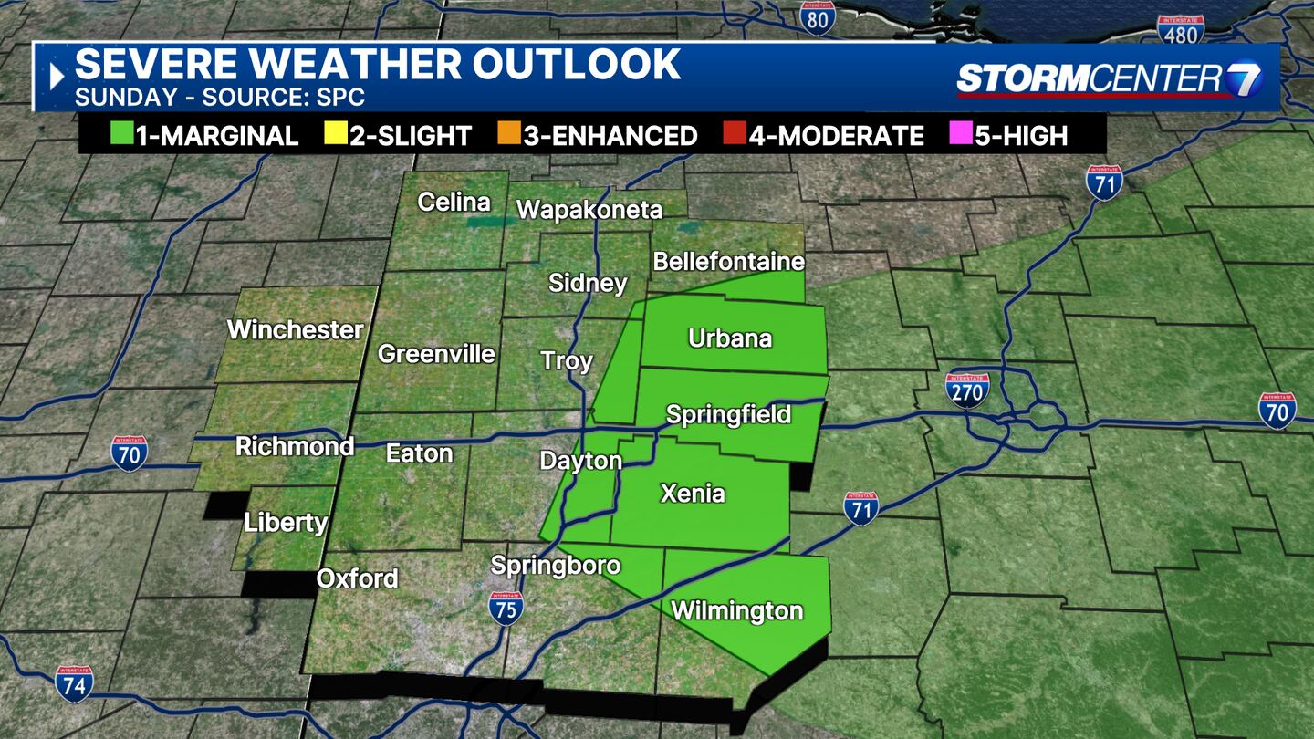 An isolated strong storm is possible as the SPC has a Level 1 risk of severe weather east of Dayton, but this does not appear very concerning at this time.