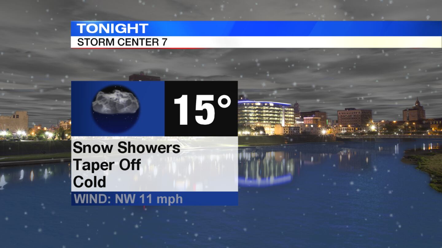 Tuesday: A very cold morning with wind chills below zero. A few light snow showers will be possible. Cold, with highs reaching the low 20s.