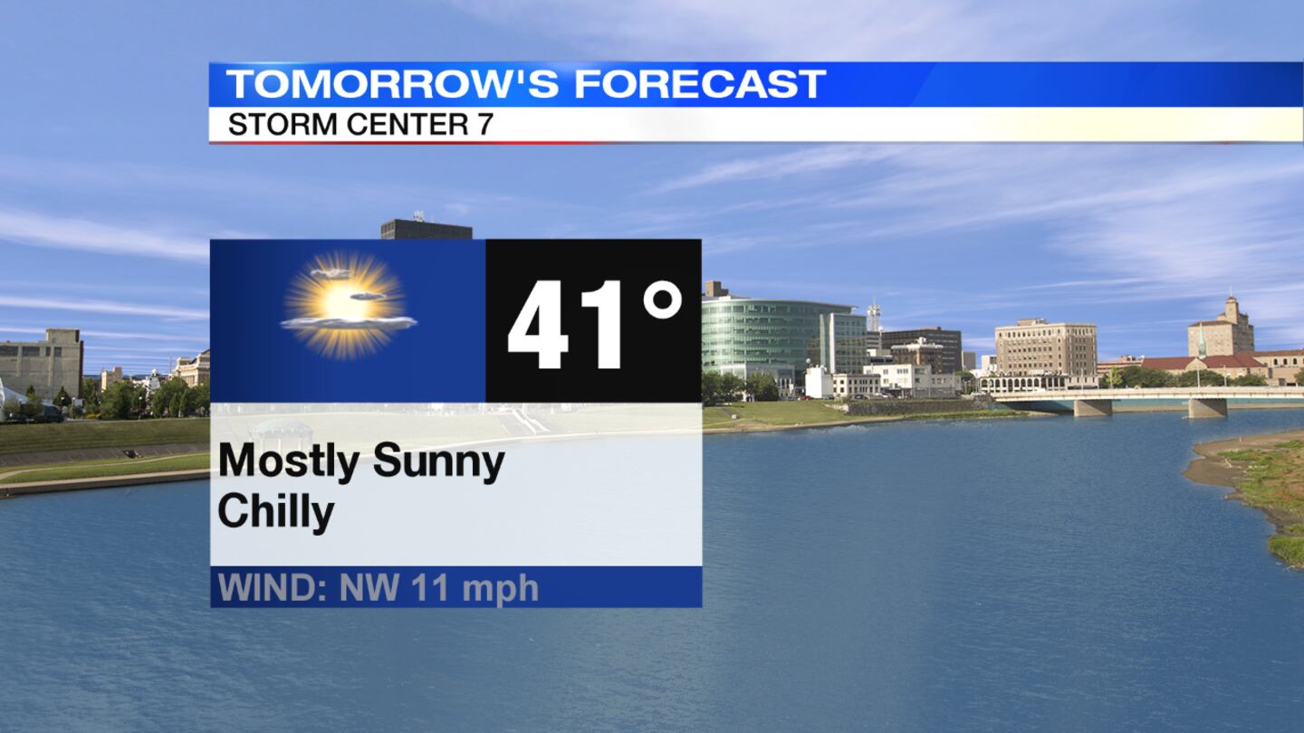 Tuesday: Another chilly start to the morning with temperatures in the lower 30s. Lots of sunshine in store, with highs reaching the lower 40s.