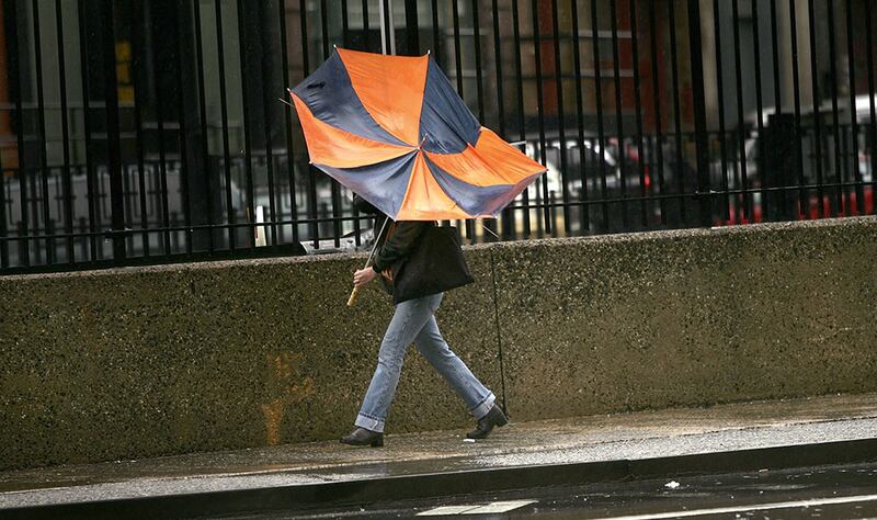 - Showers and thunderstorms, gusty winds