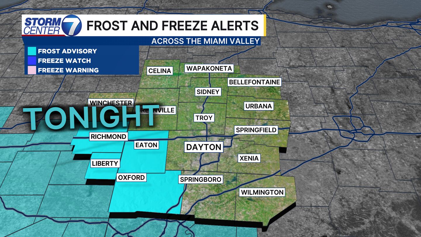 Tonight, clouds, especially further north and east will limit the frost potential. Preble, Butler, and Wayne counties may still have frost though. There, the sky will clear out allowing temperatures to get colder. Expect low temperatures in the middle 30s. A frost advisory is in effect.