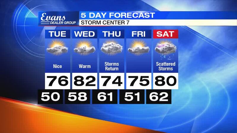 WEDNESDAY: An unseasonably warm day is expected with partly cloudy skies. Highs will top out in the lower 80s by late afternoon.