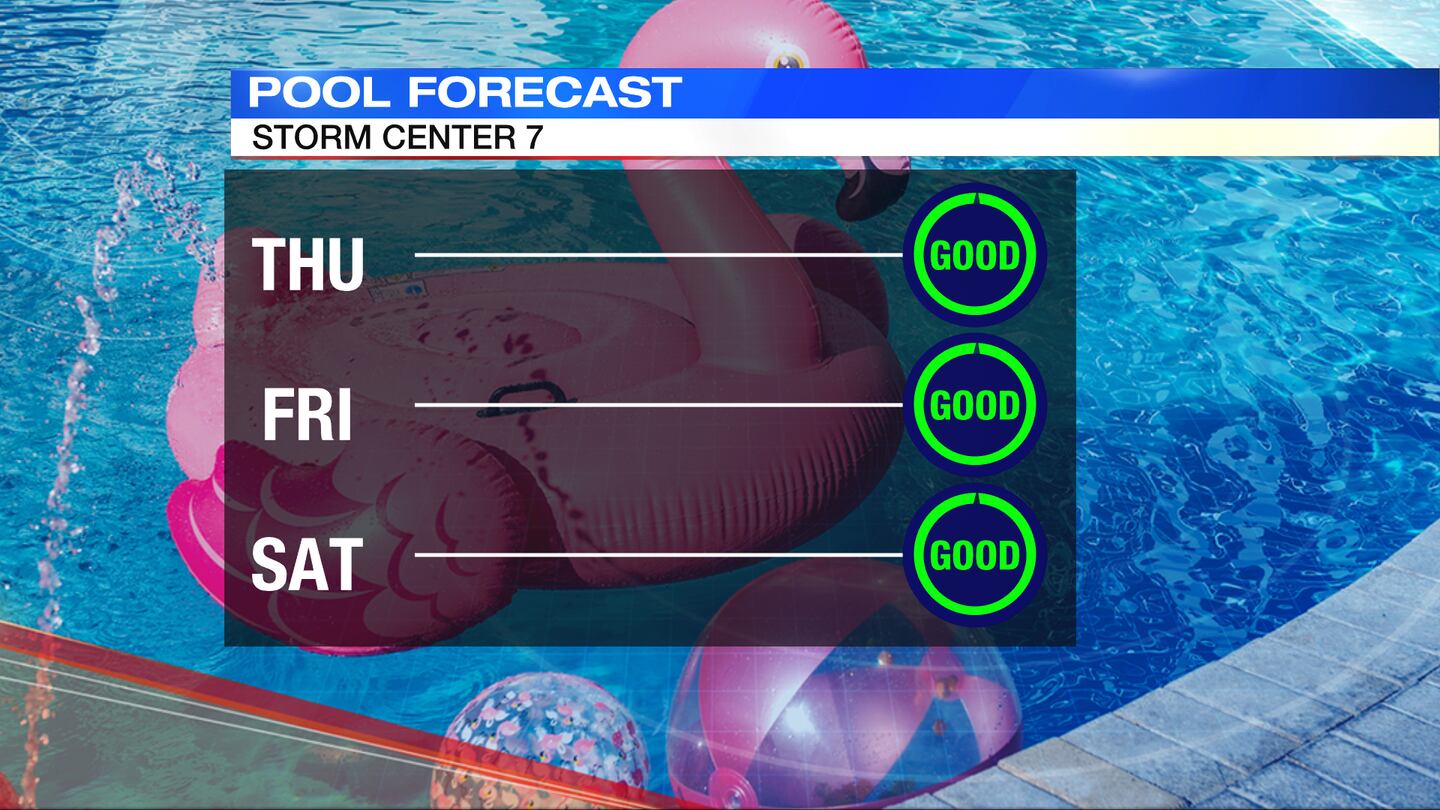 SUNDAY: Partly sunny and warm with a chance of showers and storms likely to develop. Highs in the upper 80s.