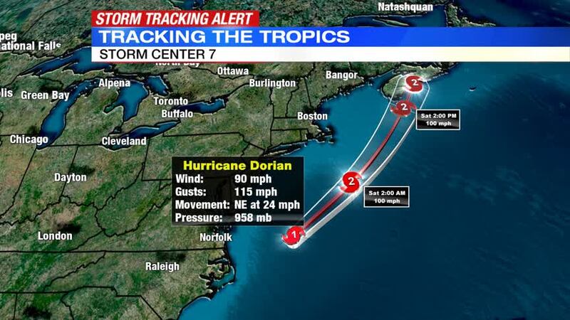 Hurricane Dorian remains a major hurricane as a Category 1 storm and is racing northeastward, away from the Mid-Atlantic states.