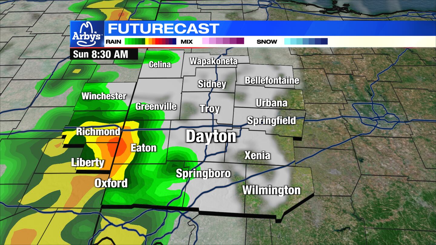 MONDAY: Scattered showers especially early, otherwise partly cloudy and milder behind the cold front. High temperatures are in the upper 70s and low 80s.